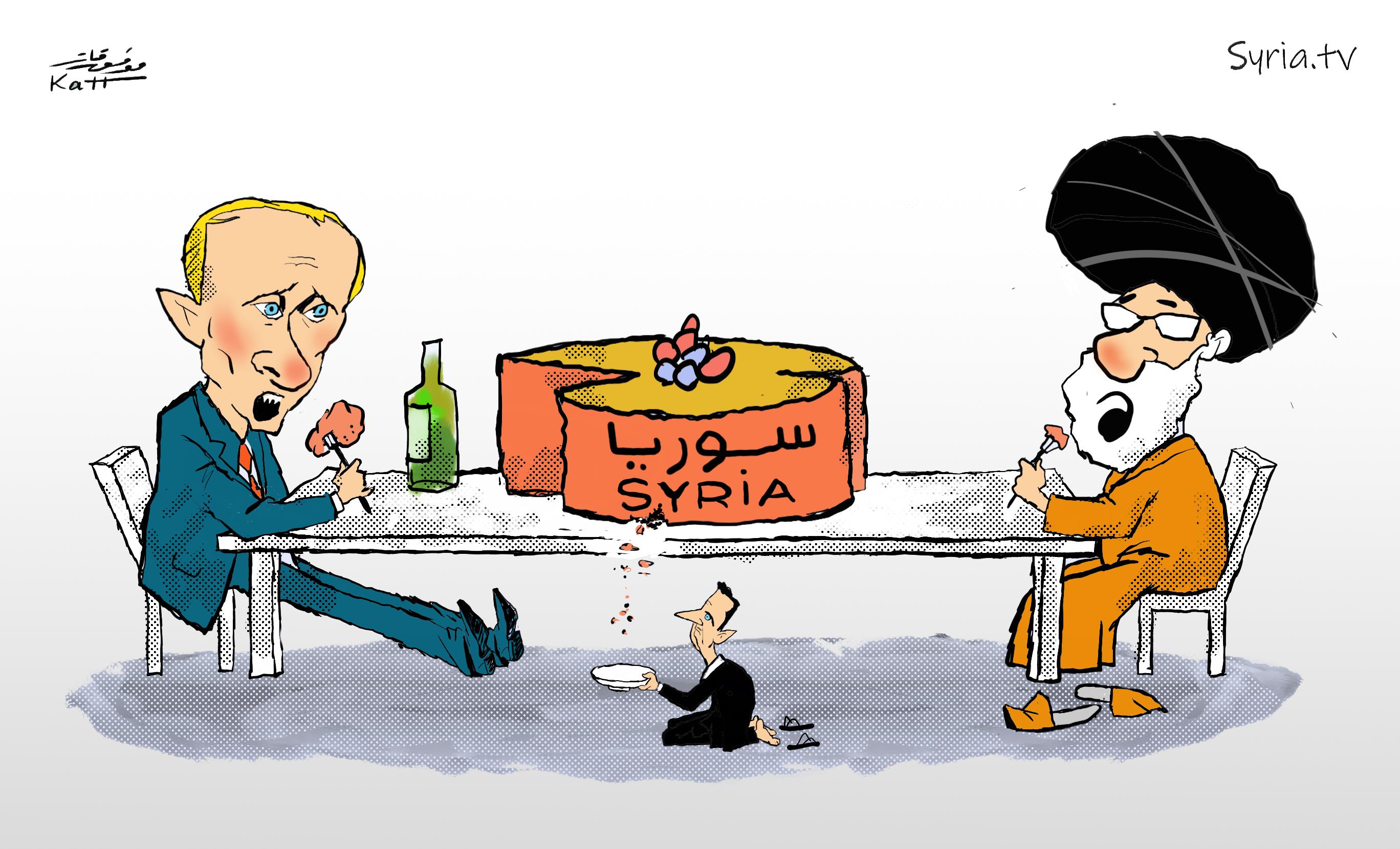 קריקטורות רוסיה ואיראן בוזזים את אוצרות הטבע בסוריה ומשאירים לאסד פירורים 09/07/2021 Nziv איראן, סוריה, רוסיה