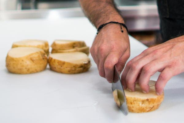 בזמן שתפוחי האדמה מוכנים ומטוגנים, שף אחר במטבח מכין רוטב גבינה שילווה את המנה. זה נעשה על ידי המסת הרבה חמאת כמהין במחבת, והוספת קמח, שמנת וקוביות של רקלט שוויצרי.
