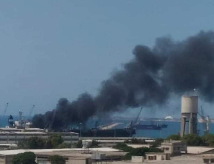 אש על סיפון ספינה מסחרית בנמל לאטקיה
