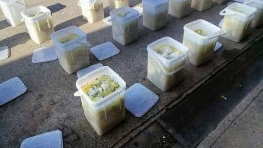 הסוכנות ציינה עוד כי הכדורים היו ארוזים בכ -35 אריזות פלסטיק בתוך מארזי הגבינה הלבנה.