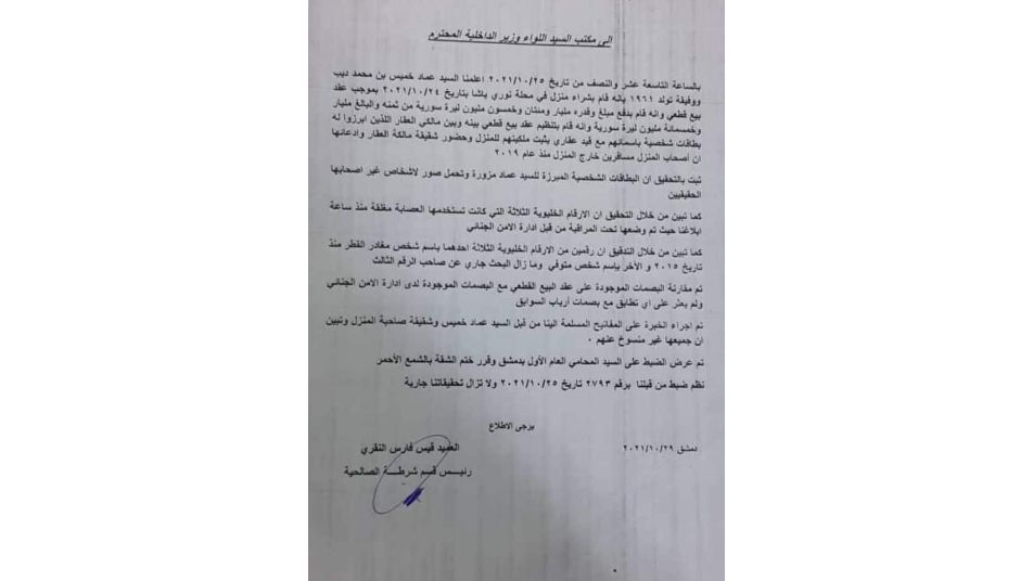 ראש הממשלה לשעבר של ממשלת אסד, עימאד חמיס, היה קרבן לתרגיל עוקץ בסכום של מיליארד ורבע לירות סוריות (יותר מ-300 אלף דולר אמריקאי) בדמשק, לפי תמונה של ספר שהופץ ברשתות החברתיות.