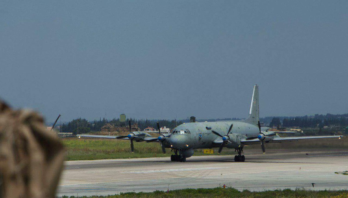 *- מטוס ללחימה נגד צוללות רוסי, האל-38 , צולם בשדה התעופה חמימים בסוריה כשברקע מציץ המכ”מ החדש של סוללת טילי האס-400 .