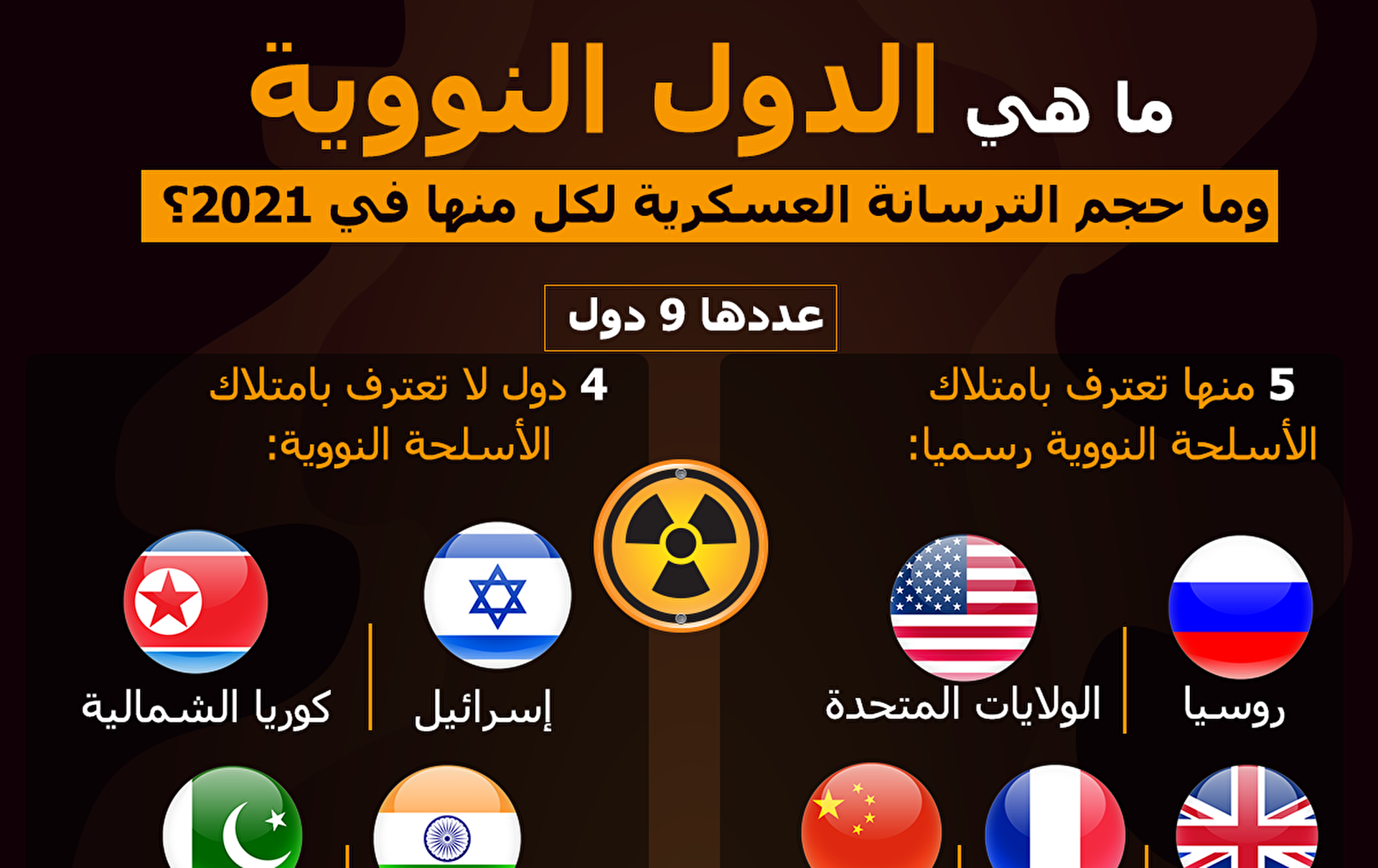 למרות שמספר המדינות שברשותן נשק גרעיני בעולם הוא 9, יש רק חמש מדינות שמכירות בהחזקת נשק גרעיני, כלומר: רוסיה, אמריקה, סין, בריטניה וצרפת.