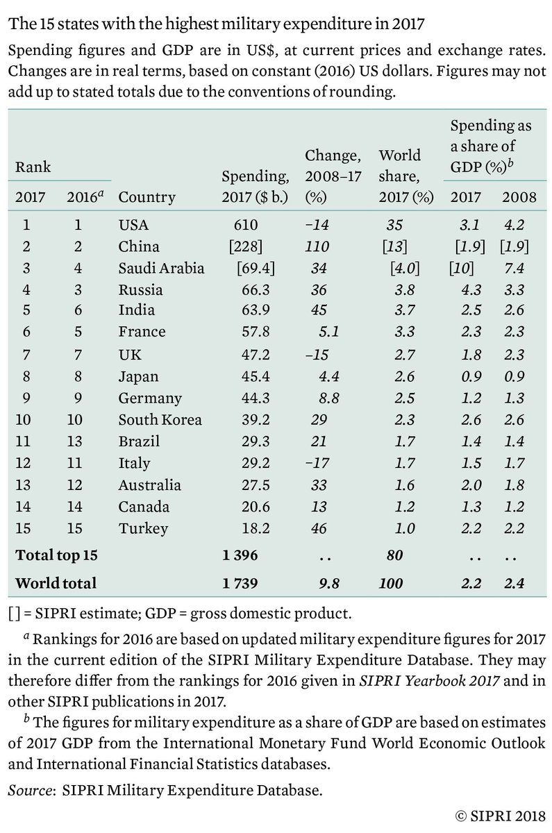 *- טבלת 15 הצבאות שמוציאים הכי הרבה כסף :