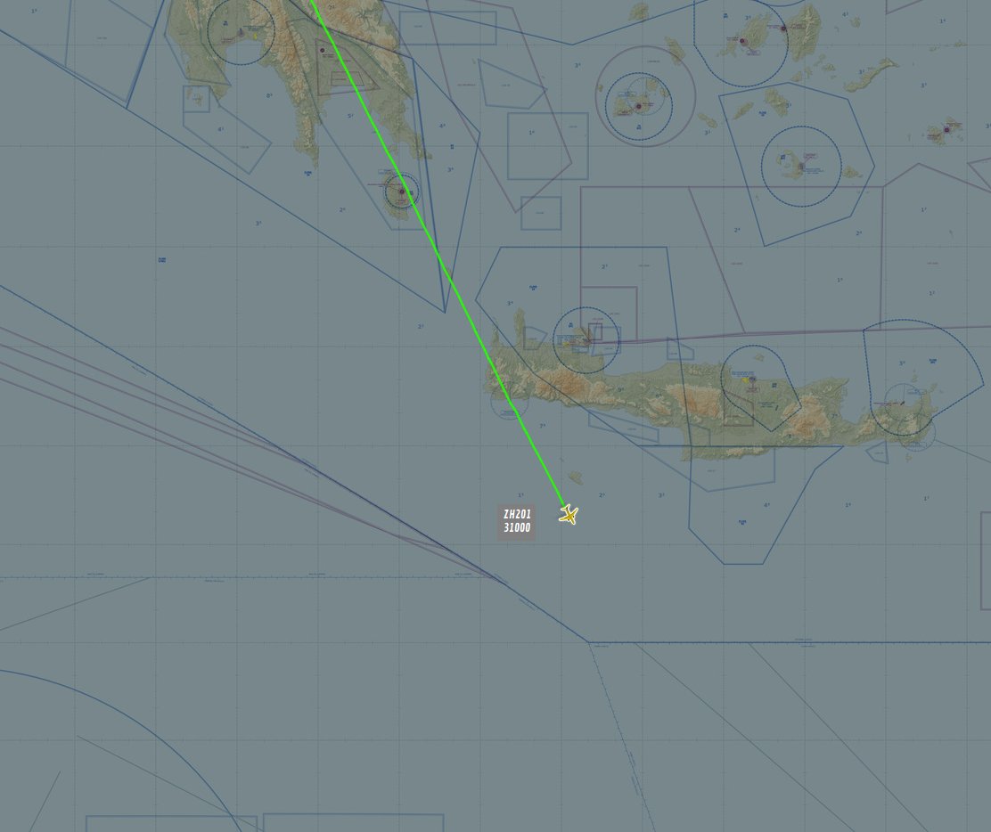 תוך שהוא חוצה את שמי האי כרתים בים התיכון.
