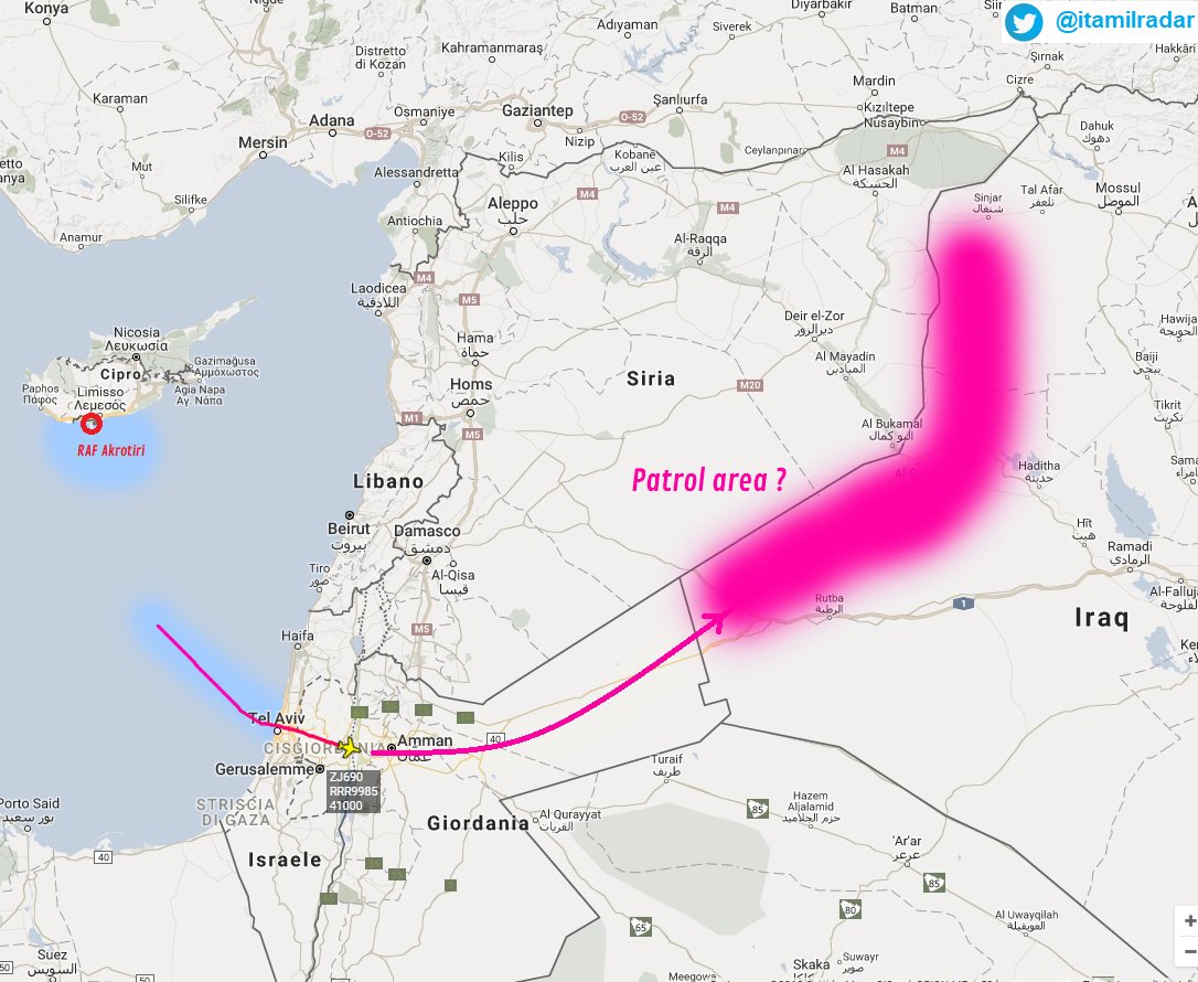 *- אתמול בצהרים יצא מטוס מודיעין של חיל האוויר הבריטי מדגם Boeing E-3CF “Sentry” (ZH101) בדרכו למזרח התיכון
