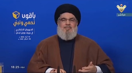 “אנחנו נמשיך להתעקש להיות נוכחים בכל ממשלה, ללא קשר לאופייה, המבנה והתוכנית שלה, כדי להגן על גב ההתנגדות”, אמר נסראללה בעצרת בחירות באמצעות קישור וידאו.