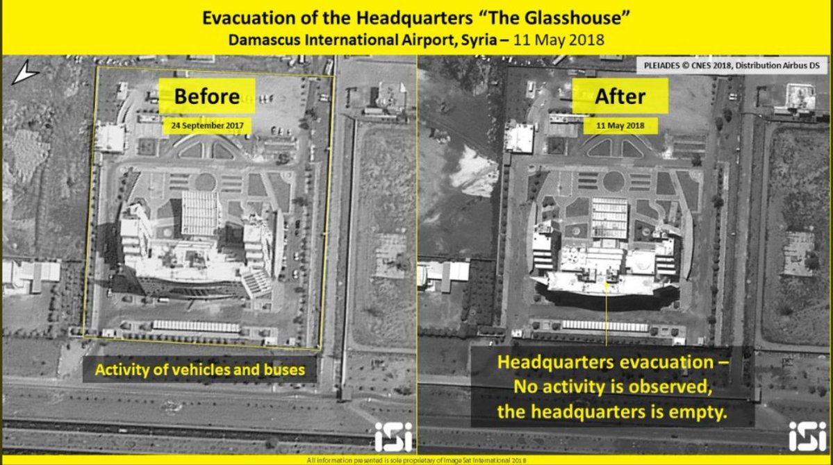 *- בית הזכוכית-המפקדה האירנית הראשית בסוריה והנמצאת בשדה התעופה הבין לאומי של דמשק פונה מיושביו והוא אינו פעיל כרגע עקב חשש אירני שהבנין יושמד על ידי ישראל.