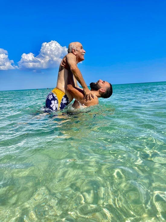 תמונה של צעיר נושא את אביו הקשיש בזמן ששחו בים, מול תמונה שצולמה לפני 29 שנים, כשהיה צעיר ואביו נשא אותו לים, הציתה אהדה רבה גם בקרב חלוצי אתרי הרשתות החברתיות במצרים.