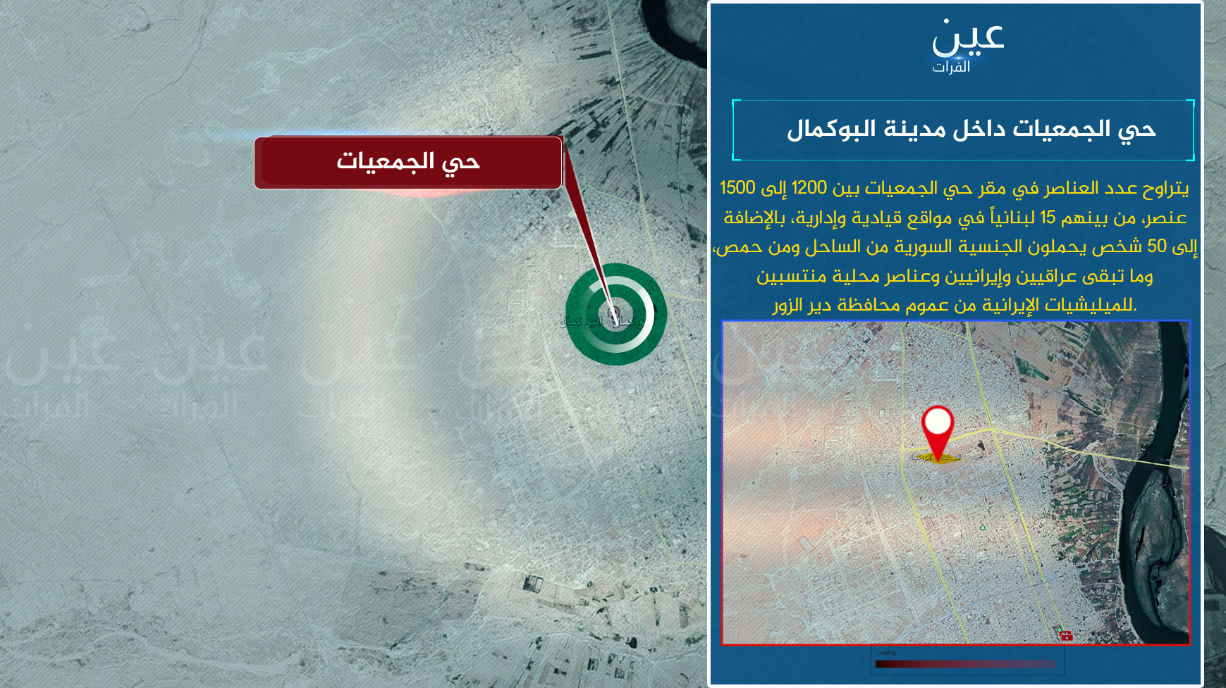 הרשת ציינה כי במהלך הימים האחרונים התקיימו מספר פגישות של מפקדי המיליציות באלבוכמאל, הווי אומר “חאג’ עסכר” (שחוסל באופן מסתורי יום אחר כך), “חג’ מסעוד אל-איראני”- גורם ביטחוני, “אבו אל-פידא אל-עיראקי”, מנהיג מיליציית חיזבאללה עיראק, ו”אבו זינב אל-לובאני” בכיר חיזבאללה הלבנוני באל-בוכמאל, בכיר במיליציית “עסאיב” – אבו ראמה אל-עיראקי, ובכיר בארגון “גדודי אימאם עלי” בפיקודו של “אבו עלי אל-כרבלאי”.