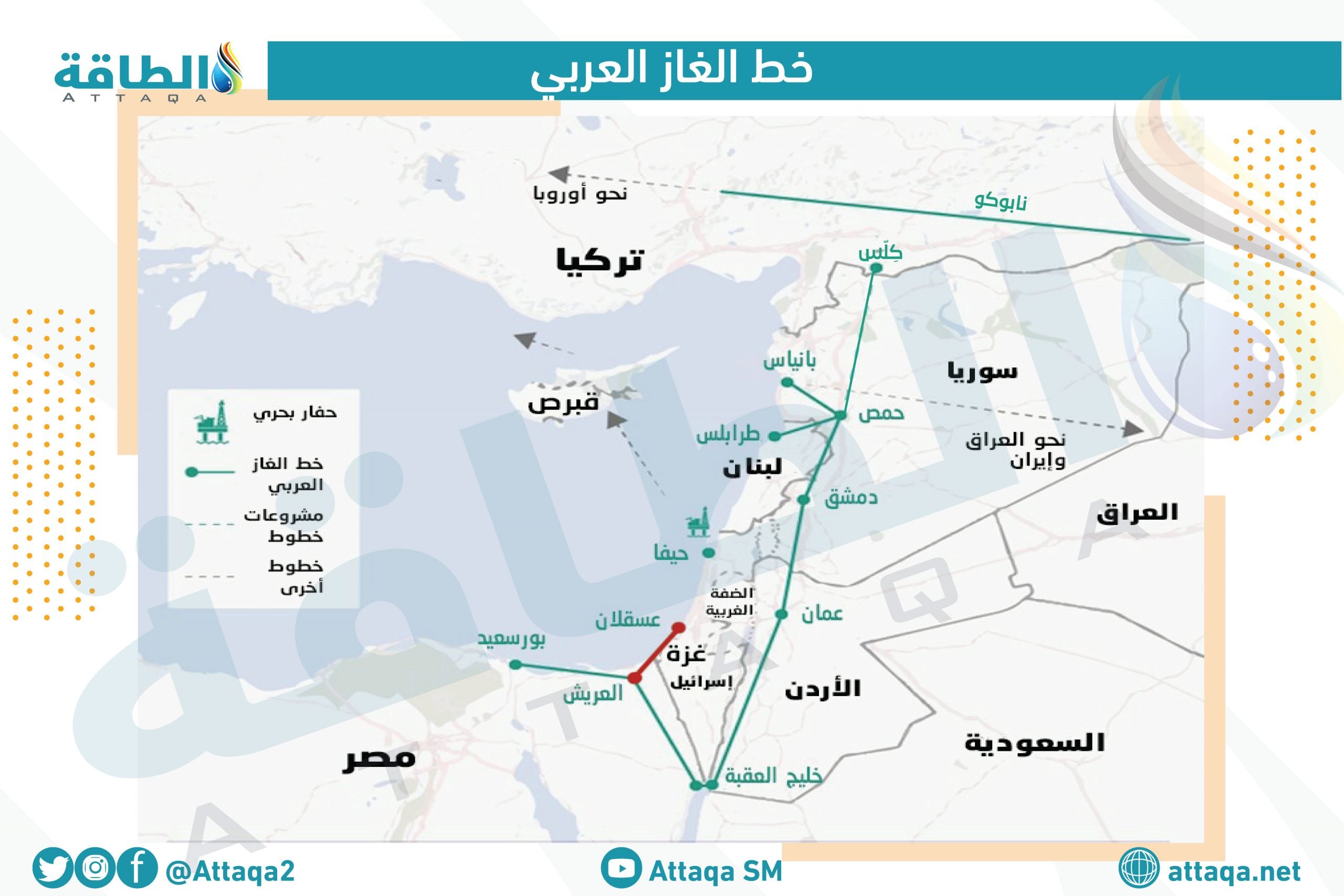 לפי “אל-מסרי אליום”, גז מצרי יוזרם ללבנון דרך צינור הגז הערבי, שמתחיל ממצרים שעובר לירדן, לאחר מכן סוריה ולבנון, באורך של 1200 ק”מ.