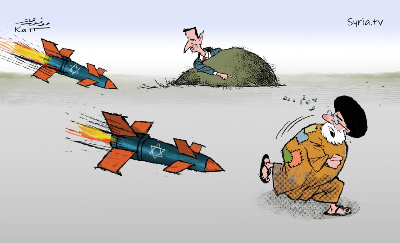 קריקטורות אסד מצביע לעבר המטרות של הטילים הישראלים 22/09/202222/09/2022 Nziv איראן, ישראל, סוריה קרדיט: סוריה טי וי