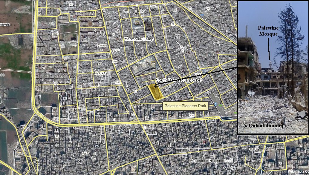 *- צבא סוריה עשה שימוש בנשק לפינוי שדות מוקשים על מנת לפלס דרכו בשטח הצפוף של מחנה הפליטים ירמוק מדרום לדמשק.