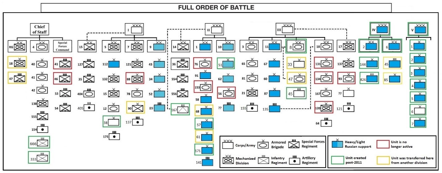 לא ברור על רקע מה נערך שינוי ההערכות של כוחות צבא סוריה אך ניתן להעריך כי הפיקוד הרוסי בסוריה היה בסוד שינויי ההערכות ואף אישרו אותה. עפ”י התרשים שלמטה ניתן לראות כי 2 הדיוויזיות נאמנות לרוסיה.