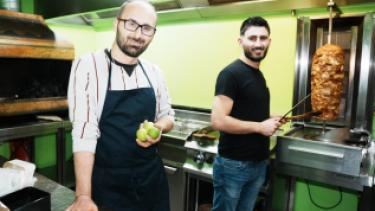 שני הפליטים הסורים הגיעו לבלגיה לפני שש שנים וכעת, כשיש להם מסעדה, הם רוצים להחזיר משהו למי שצריך.