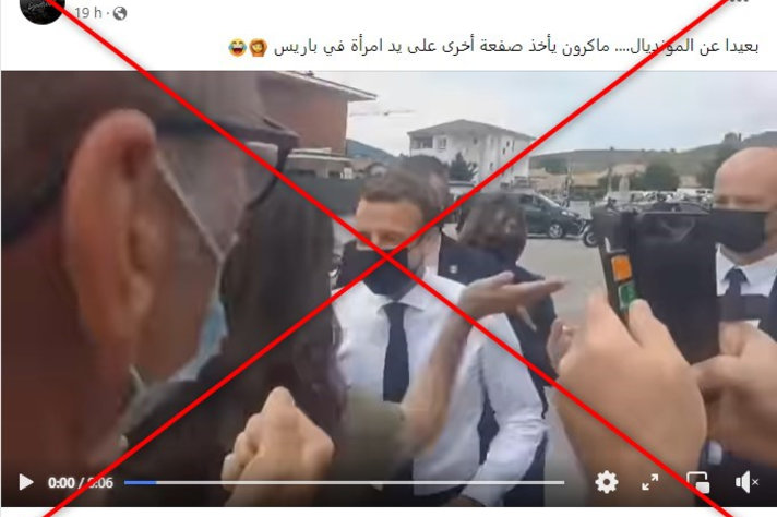 מפרסמי הסרטון אמרו שהוא מראה “סטירה נוספת” שהתקבלה על ידי נשיא צרפת מאישה בפריז, בהתייחס לסטירה קודמת לה ספג מקרון בעת לחיצת יד לאזרחים צרפתים.
