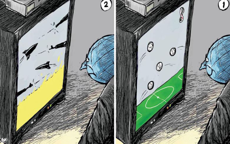 קריקטורות לאחר המונדיאל המלחמות חוזרות להעסיק את דעת הקהל העולמית 17/01/2023 Nziv מונדיאל קרדיט: אליום אלסאבע