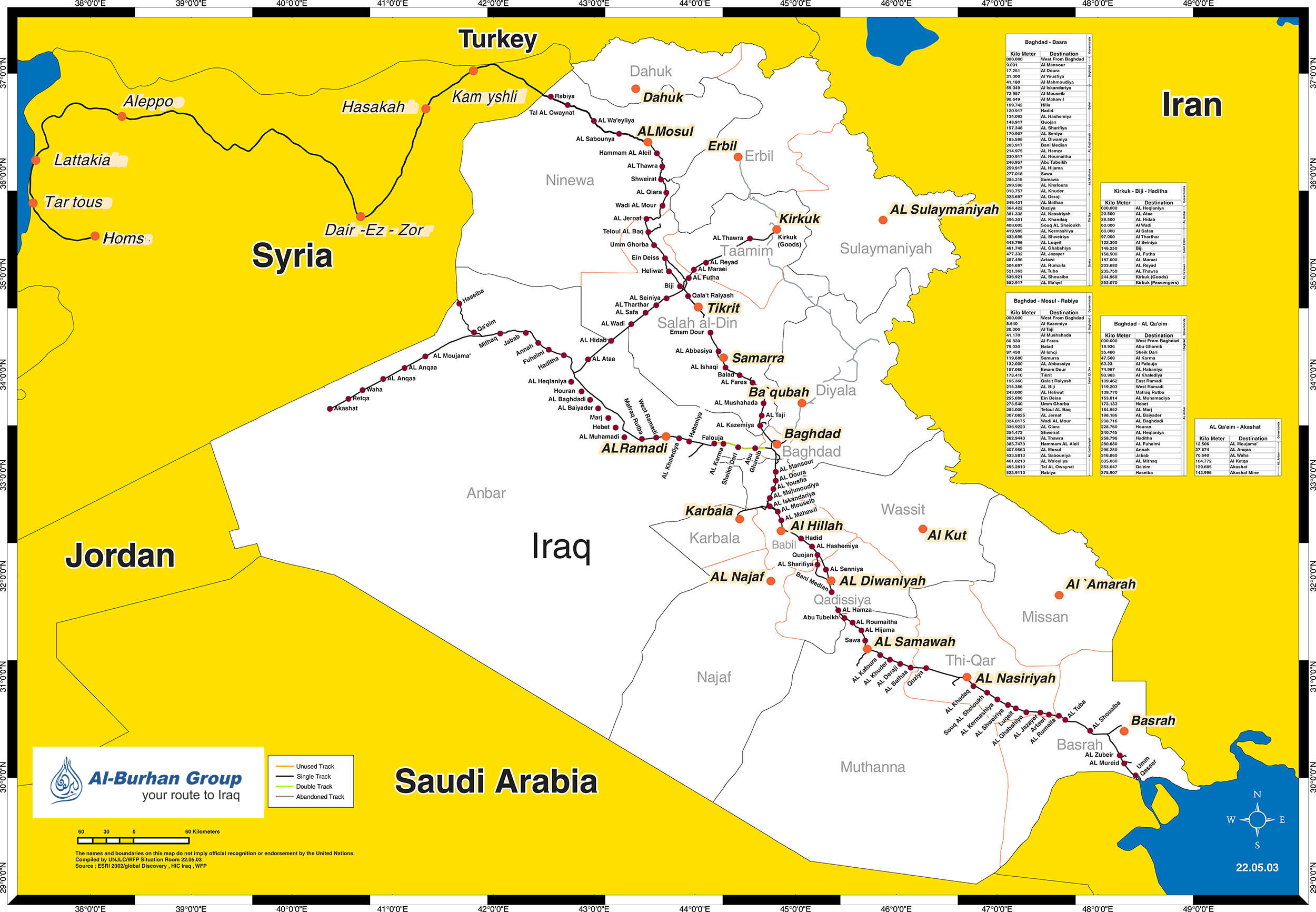 לצומת שועאיבה (الشعيبة = Shouaiba) צומת הרכבות שליד בצרה, המחברת גם את נמל אום קאסר, אל רשת מסילת הברזל של חברת הרכבות העיראקית = IRR (الشركة العامة لسكك الحديد العراقية = Iraqi Republic Railways) ותמשיך מבצרה אל בגדד, ותגיע אל כירכוכ (كركوك = Kirkuk) וארביל (أربيل = Erbil) שב כורדיסטן העיראקית, ומשם אל מוסול (الموصل = Mosul) וממנה אל דוהוק (دهوك = Duhok) שוב בכורדיסטן העיראקית, ומשם כפי הנראה אל גבול עיראק – טורקיה, אציין שעדיין אין פרטים מאומתים למיקום מעבר הגבול החדש או פרטים על חיבור מסדרון התחבורה החדש אל רשת הכבישים והרכבות הטורקית.