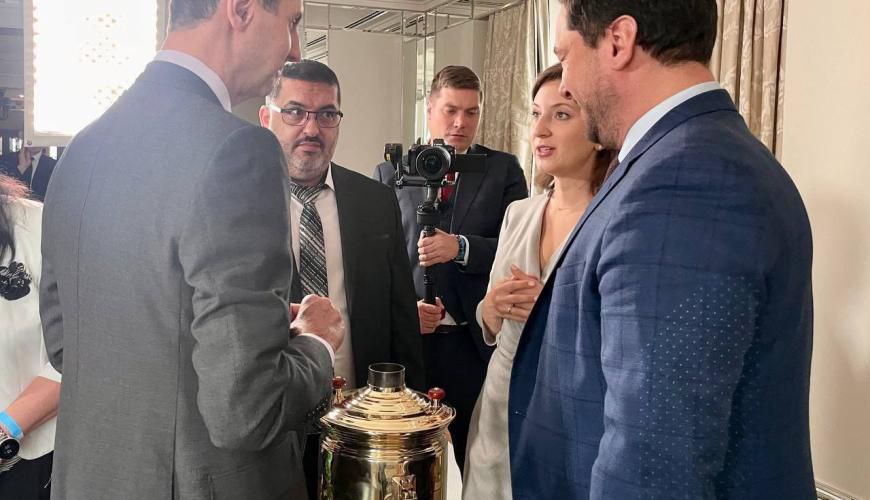 היא הוסיפה, “הפעם במוסקבה, אנו הסתפקנו בהענקת סמאוור להכנת תה, הפועל ללא חשמל, שכן סוריה סובלת מהפסקות חשמל ארוכות”.