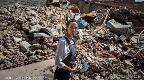 *- שחקנית הקולנוע המפורסמת – אנג’לינה ג’ולי בביקור בחורבות העיר מוצול בצפון עירק.