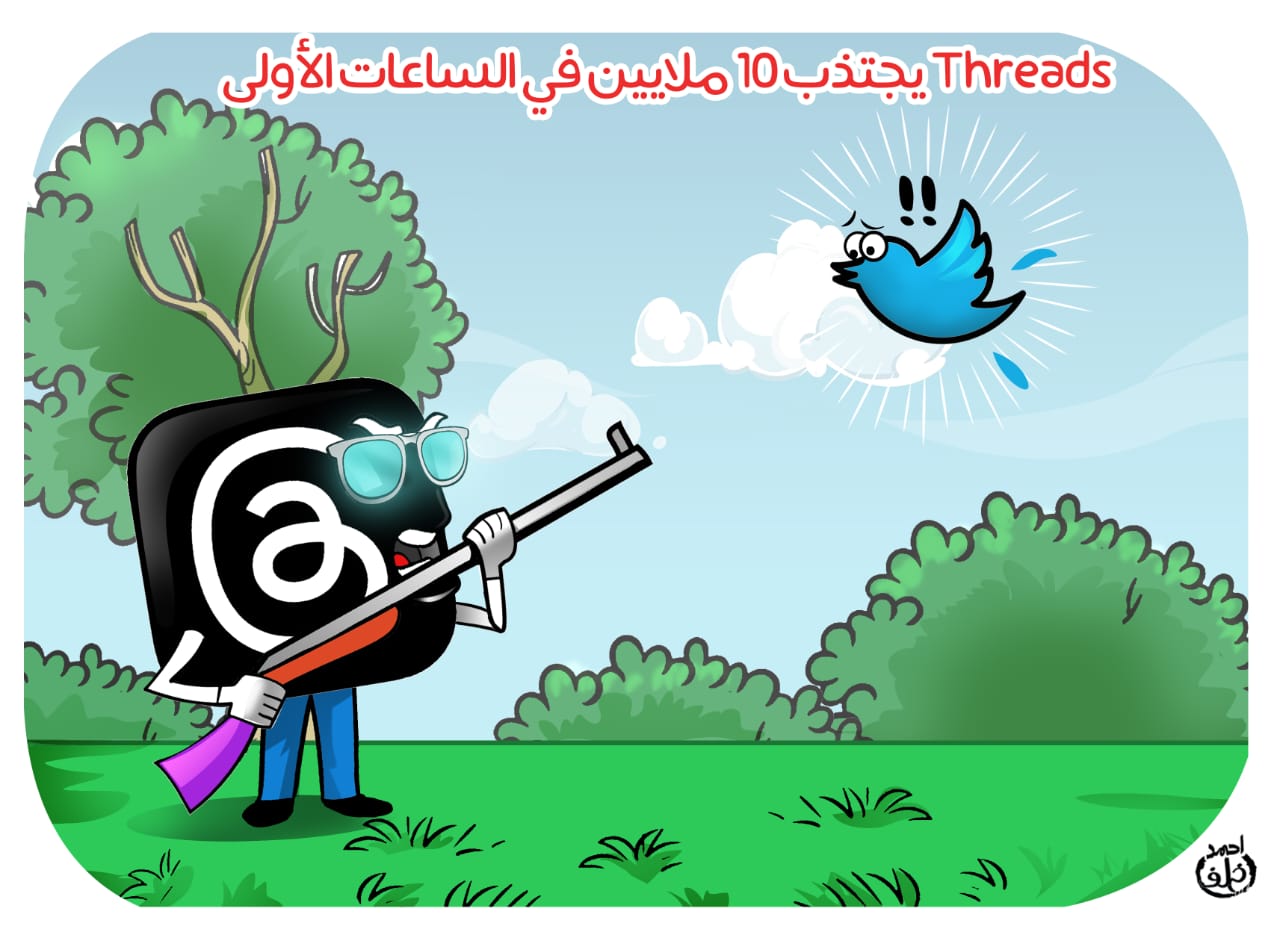 קריקטורות 10 מיליון מצטרפים לאפליקציית THREADS של פייסבוק תוך שעה 07/07/2023 Nziv אינטרנט קרדיט: אליום אלסאבע