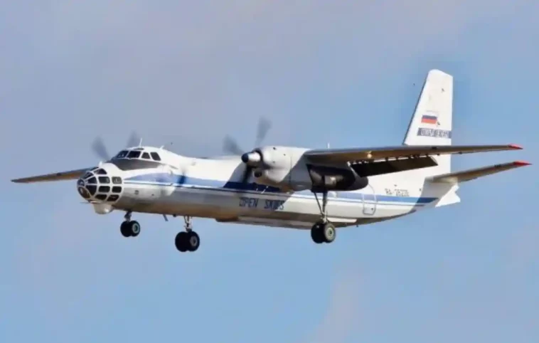 מטוס סיור מדגם An-30 של חיל האוויר הרוסי נראה טס מעל קסרקטיני בסיס אל-תנף במזרח סוריה.