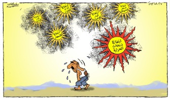 קריקטורות האזרח הסורי סובל מחום השמש, מהתייקרות הבנזין, מיוקר המחיה ועוד… 26/07/2023 Nziv כלכלה, סוריה קרדיט: סוריה טי וי
