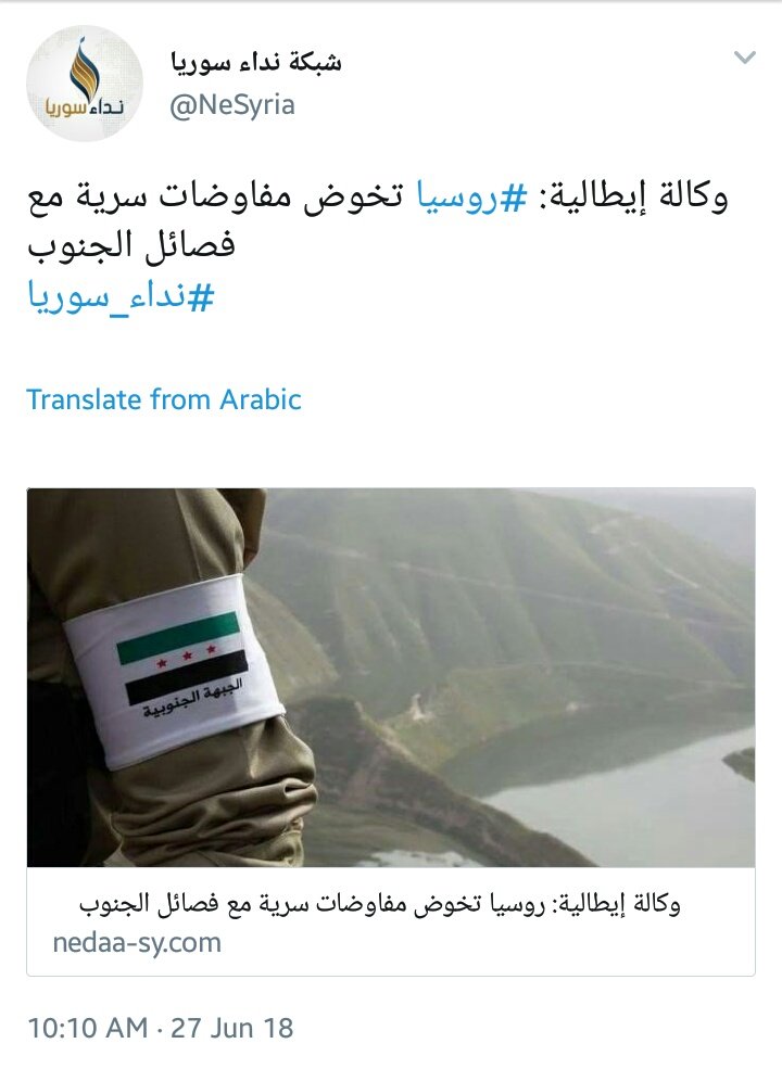 אתר החדשות הלבנוני – אלמודון – al-Modon  מדווח כי אפשר והוסכם בין הצדדים שחלק מלוחמי דאעש ,הנצורים בדרום מערב מחוז דרעא , יורשו להצטרף לקרבות נגד צבא סוריה באזוריה המזרחים של מחוז דרעא. מכל מקום יש עוד לקבל אישור לדיווח זה.