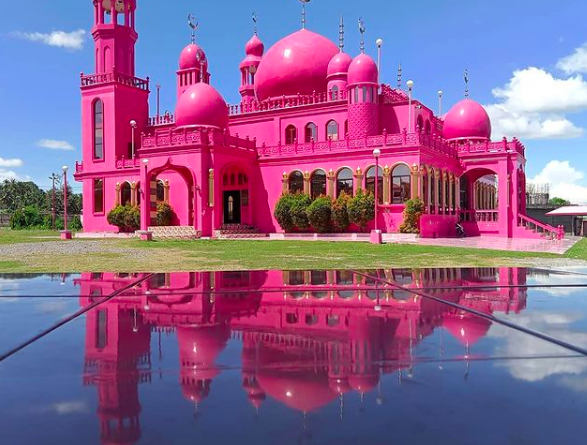 קרא עודהמסגד שבתמונה אכן אמיתי, שמו: מסגד Dimaukom, ומטבע הדברים הוא ידוע גם בשם המסגד הורוד. צבעו של המסגד תוכנן מראש