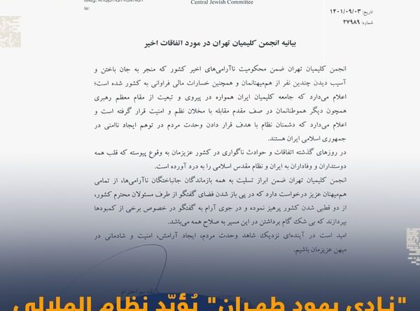 קרא עודבעוד משטר המולות המשיך לדכא את תנועת המחאה העממית שפרצה באיראן בספטמבר האחרון, זכה המשטר לתמיכה מפתיעה מהקהילה היהודית באיראן,