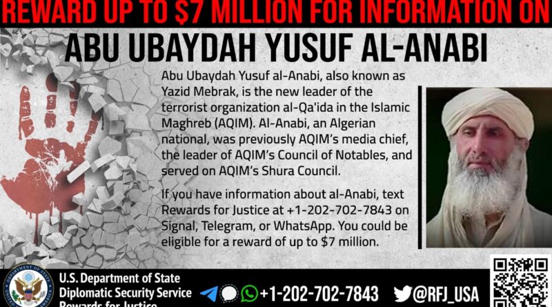 קרא עודארה"ב מציעה פרס בגובה של עד 7 מיליון דולר עבור מי שיביא מידע על אבו עוביידה יוסף אל-ענאבי (أبو عبيدة